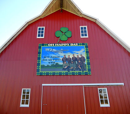 This work was part of the Zumbro River Valley Quilt Project. The family was approached about putting up a quilt square on their barn. They wanted to take it a step further and memorialize Bill, husband, father and grandfather. I know this family and I knew Bill as the "singing postman" in Wabasha as well as the Irish Tenor that sang beautifully at most funerals in town. I felt privaledged and happy to do it. I worked in their garage and listened to the stories of him and his crew. One paticular story really choked me up. Bill was a tail gunner in that B-17. It seems he developed this big voice by singing as loud as he could to comfort himself as well as muster up the courage to go up again, not knowing if he would come back down alive. Bill's in the back row, last one on the right. His wife called him " Hawkeye".